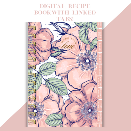 Digital Recipe Book, Made with Love Recipe Book, Blank Recipe Book, Floral Recipe Book Digital