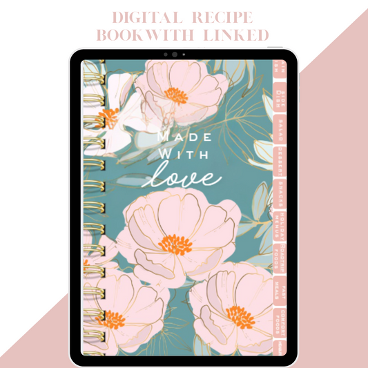 Digital Recipe Book, Made with Love Recipe Book, Blank Recipe Book, Floral Teal Recipe Book Digital (Copy)
