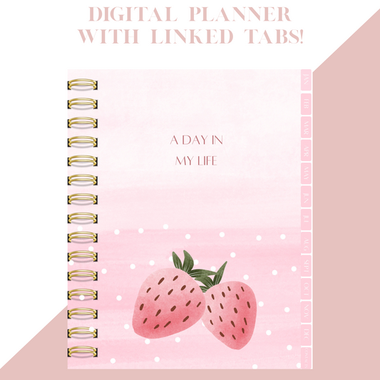 Digital Planner, monthly, weekly planner, organization with contact page, Strawberry digital planner